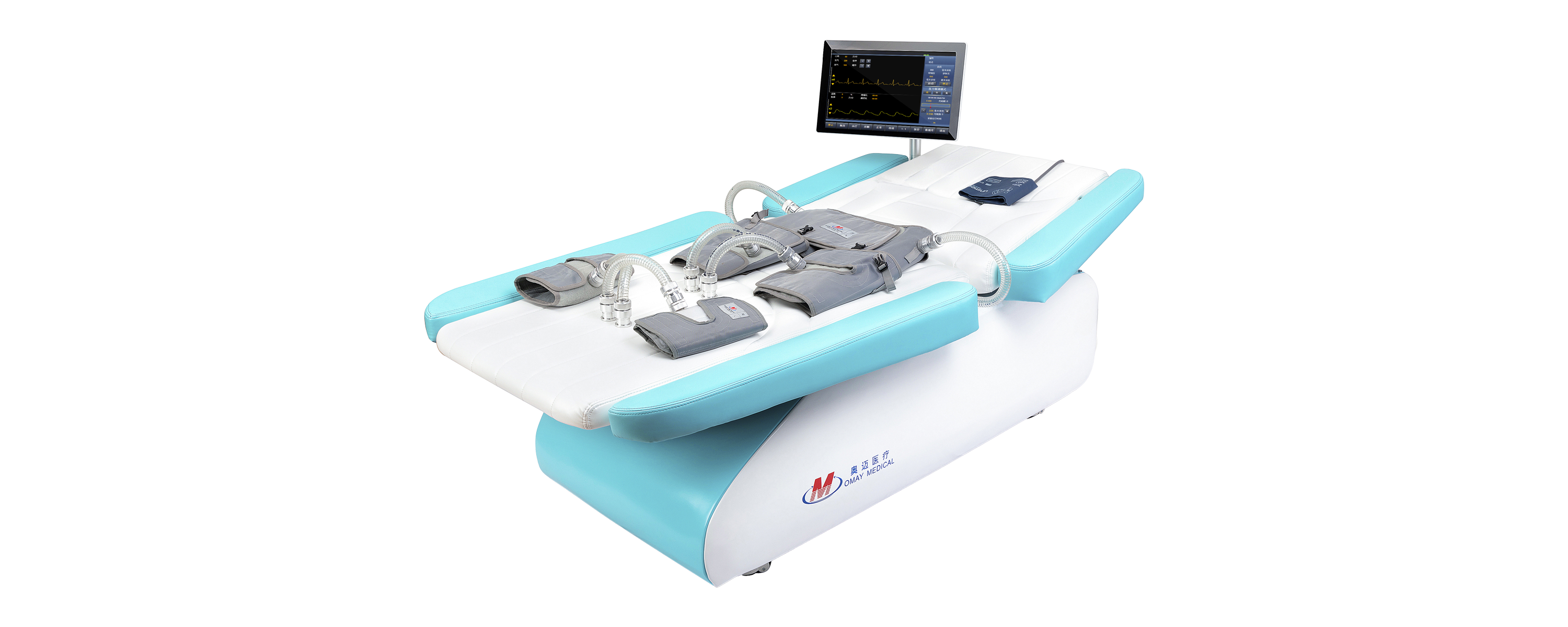 气囊式体外反搏系统是一种无创的治疗心脑血管缺血性疾病的系统。该系统通过心电信号同步控制气囊依次加压于小腿、大腿、臀部,使血液在心脏舒张期集中灌注于上半身,从而促进重要器官的血液灌注,改善人体冠状动脉供血不足的症状。